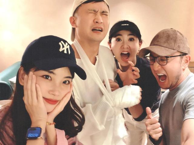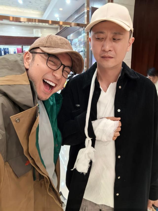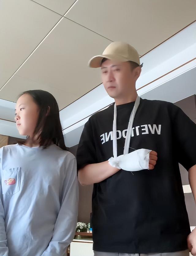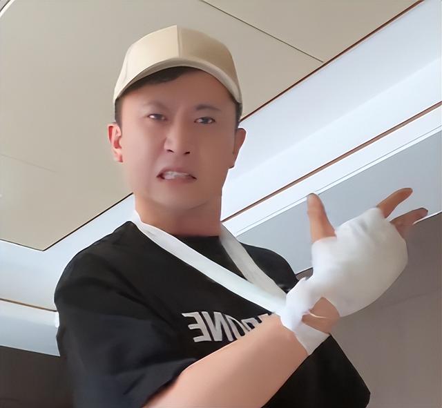 照片里的他吊着受伤的胳膊,眉头皱着,一脸委屈又无奈,看着又让人心疼,又忍不住想笑。