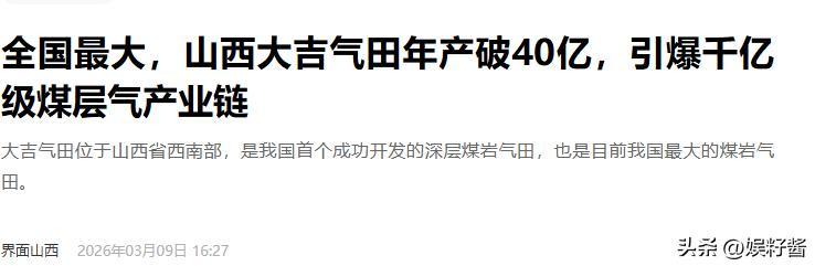 别以为这只是规划图,落地成果已经实实在在摆在那儿了。就在几天前,3月5日,位于山西西南部的我国最大煤岩气田大吉气田,正式宣布年产能突破40亿立方米。